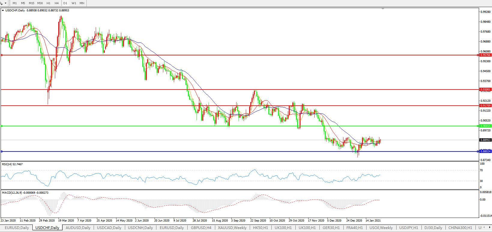 美元兑瑞郎USDCHF 日线图: