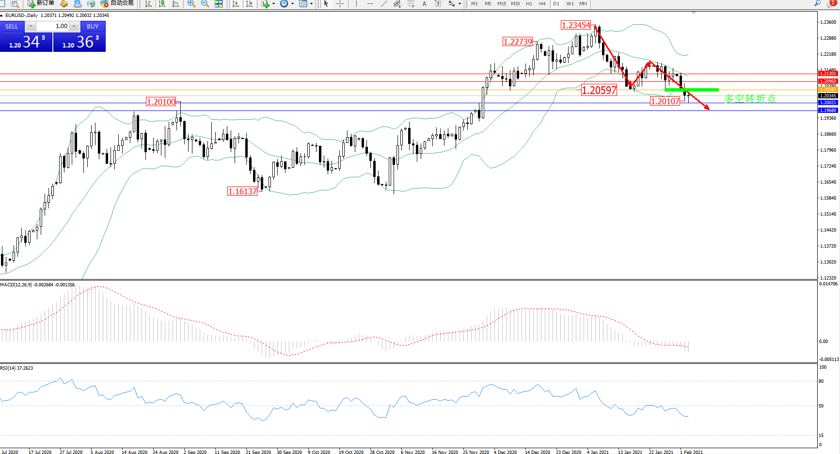 备选策略:1.20597上方看涨,目标1.20960、1.21301