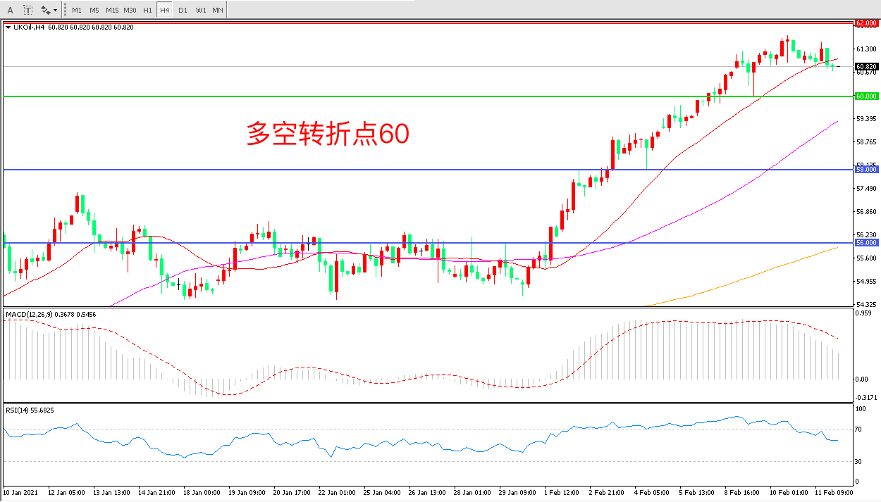 周四(2月11日),两大权威机构公布原油需求月报,欧佩克将2021年全球对欧佩克组织的原油需求预期从2720万桶/日上调至2750万桶/日, 但IEA下调了原油需求预期,同时指出非欧佩克原油供应将温和增长。布伦特原油小幅走低,收报60.82美元/桶。