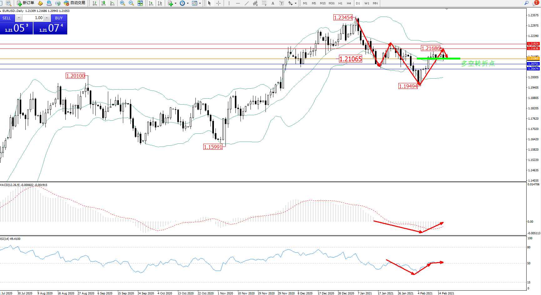 交易策略:1.21065上方看涨,目标1.21636、1.21924