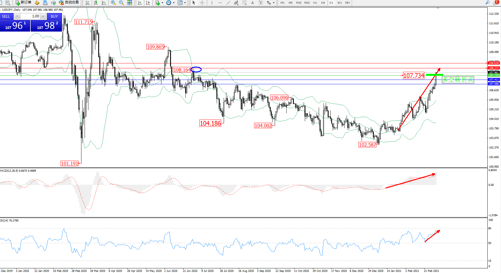 多空转折点:107.734