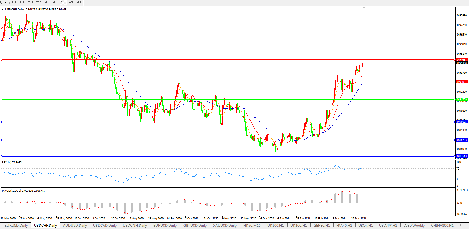 美元兑瑞郎USDCHF 日线图: