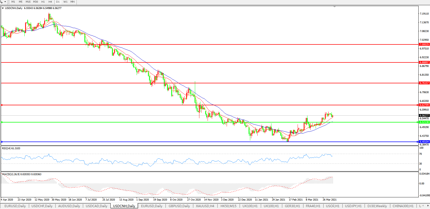 美元兑人民币USDCNH    日线图:
