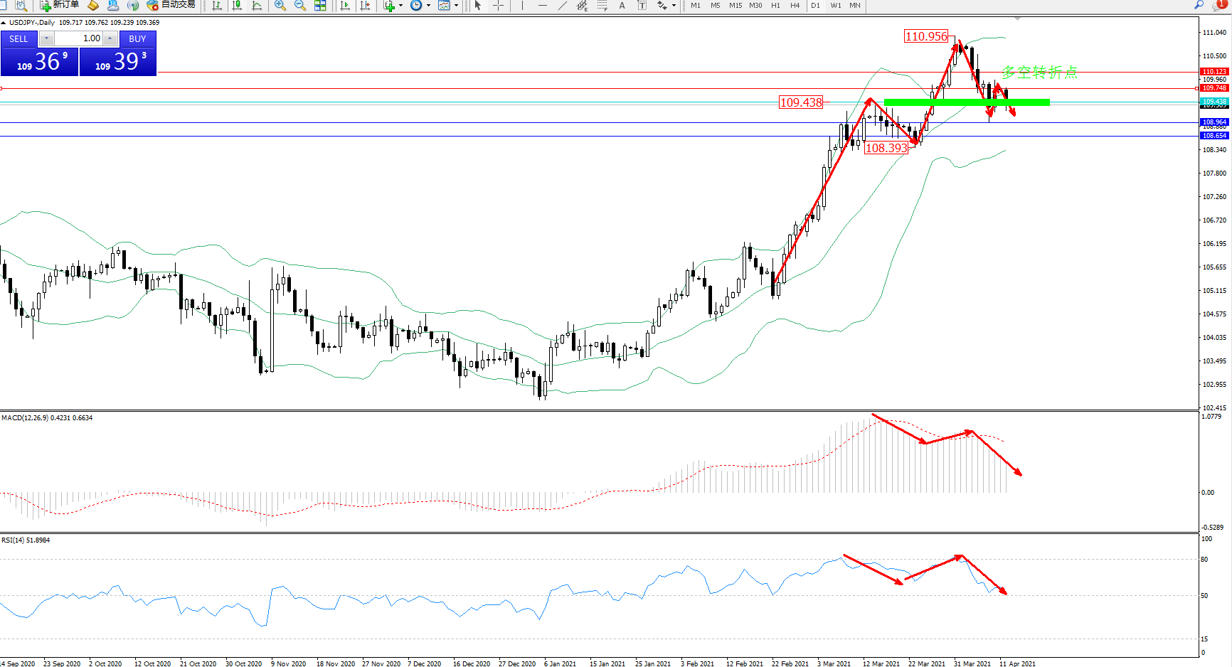 多空转折点:109.438