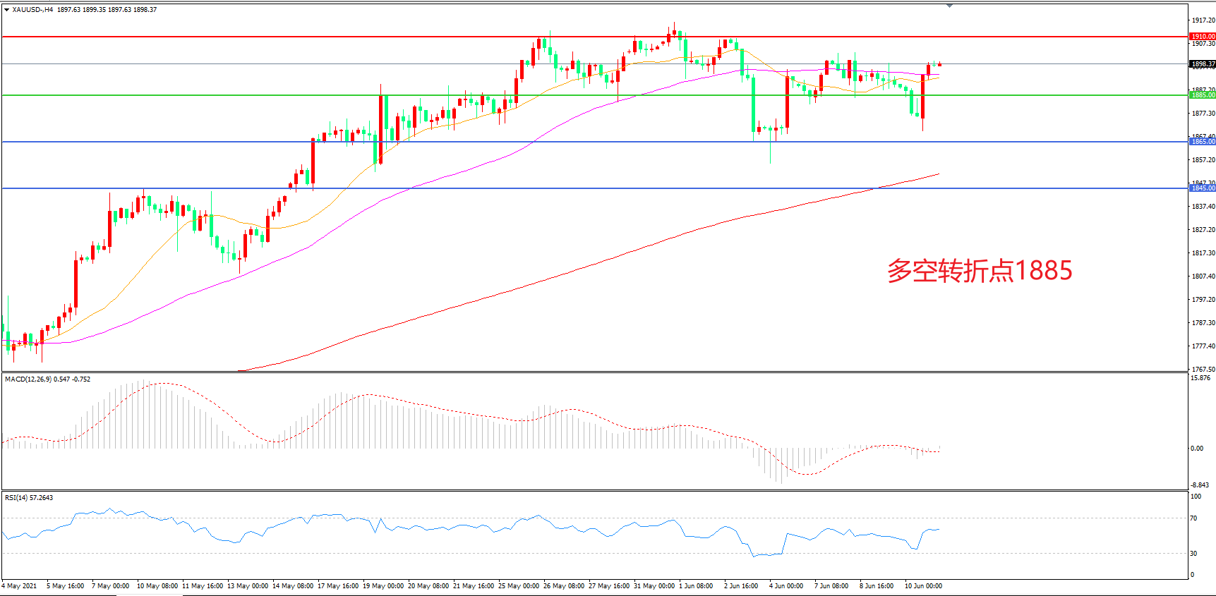 交易策略:在1885.00之上看涨,目标1910.00    1935.00
