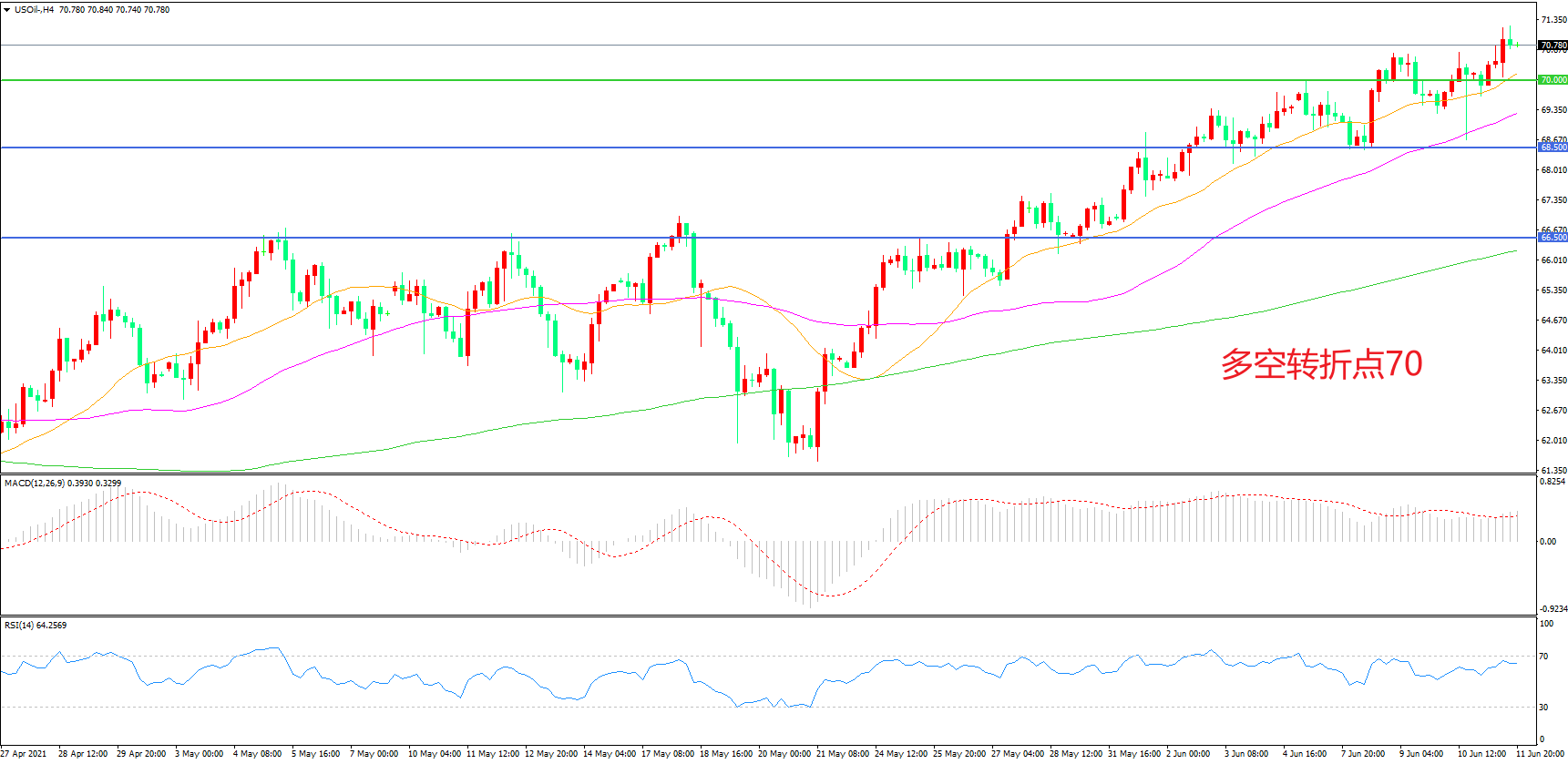 多空转折点:70.00