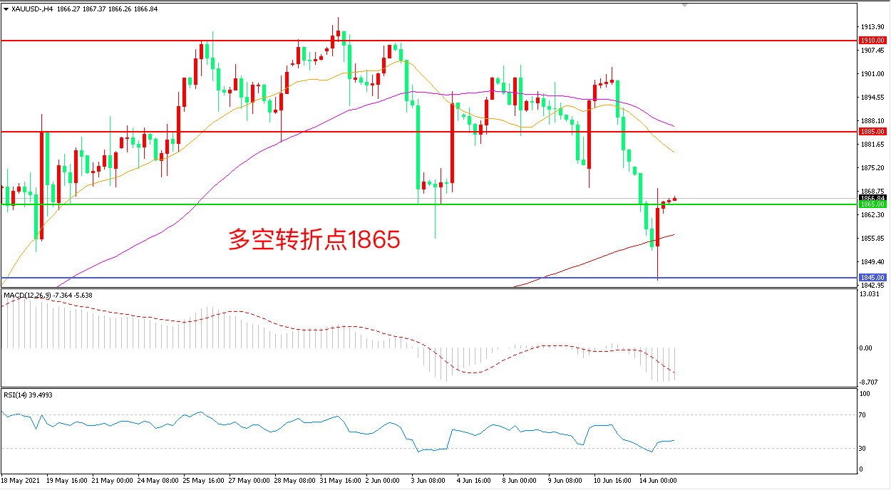 交易策略:在1865.00之下看跌,目标1845.00    1820.00