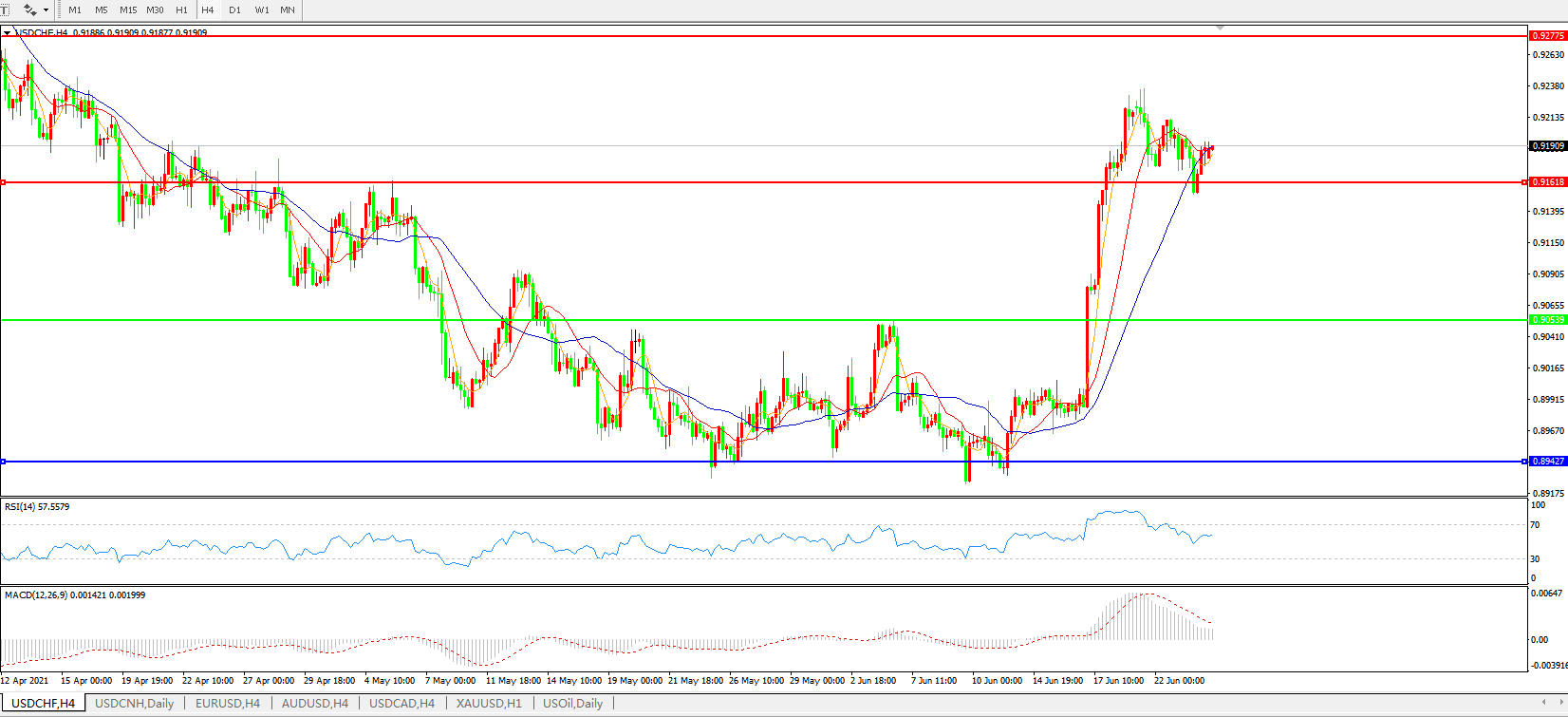 美元兑瑞郎USDCHF 4小时图: