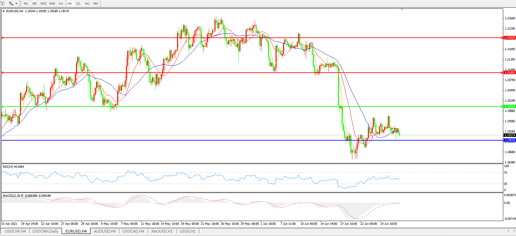 欧元兑美元EURUSD 4小时图: