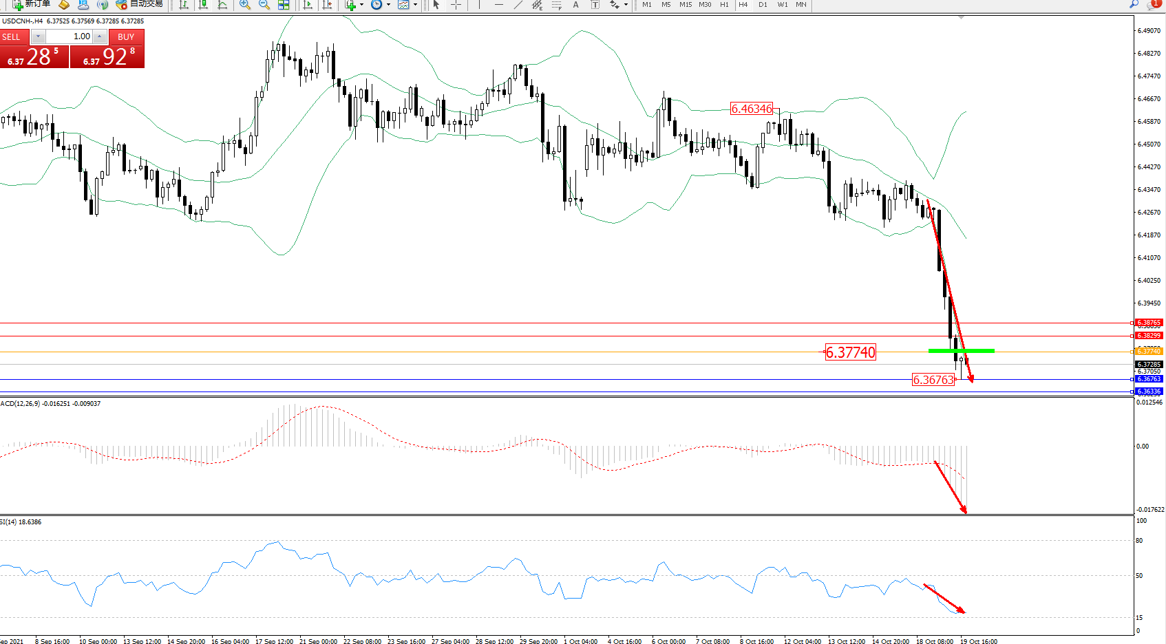 交易策略:6.37740下方看跌,目标6.36763、6.36336