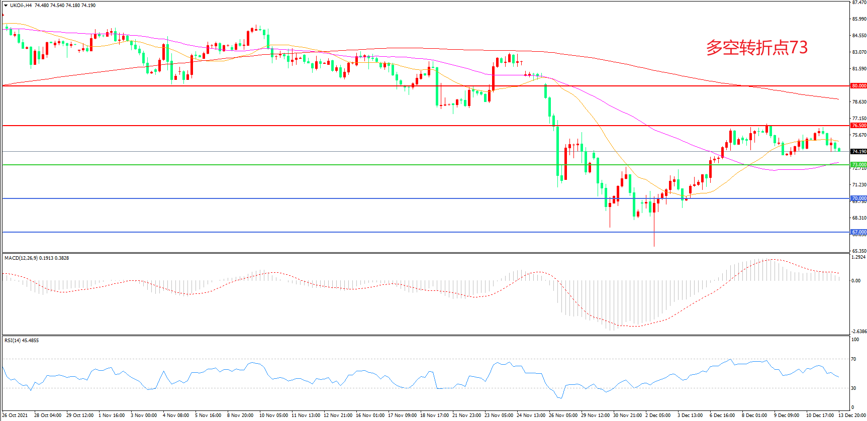 交易策略:在73.00之上看涨,目标76.50 80.00