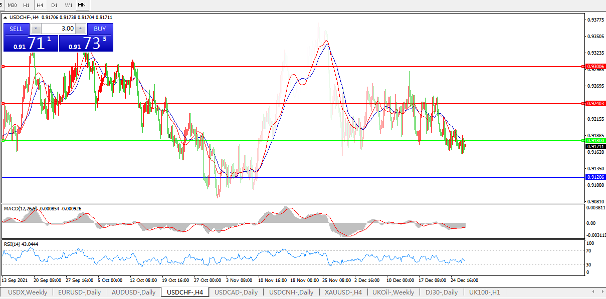 交易策略:0.9180下方看跌,目标0.9120、0.9040