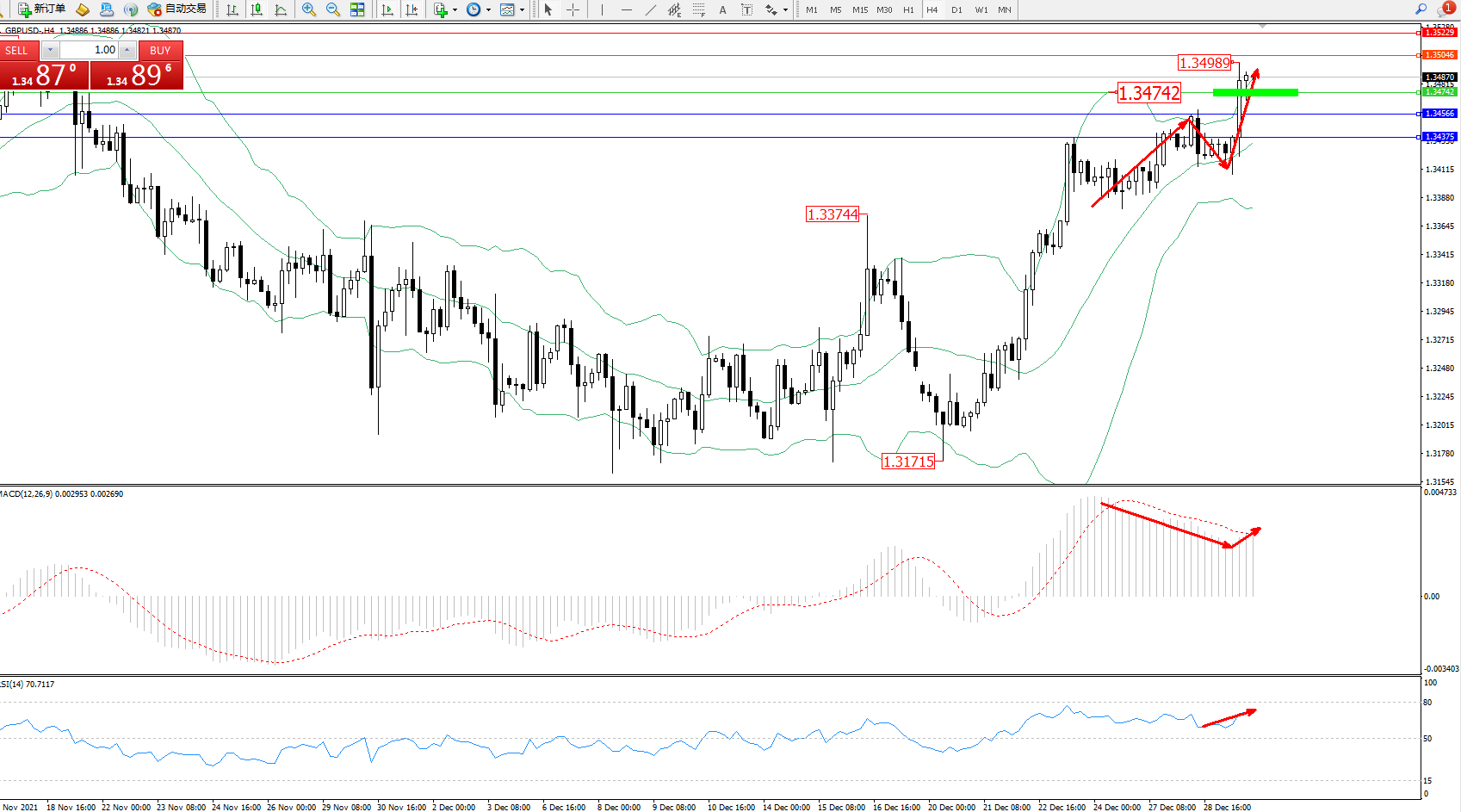英镑美元GBPUSD ——4小时K线图显示:
