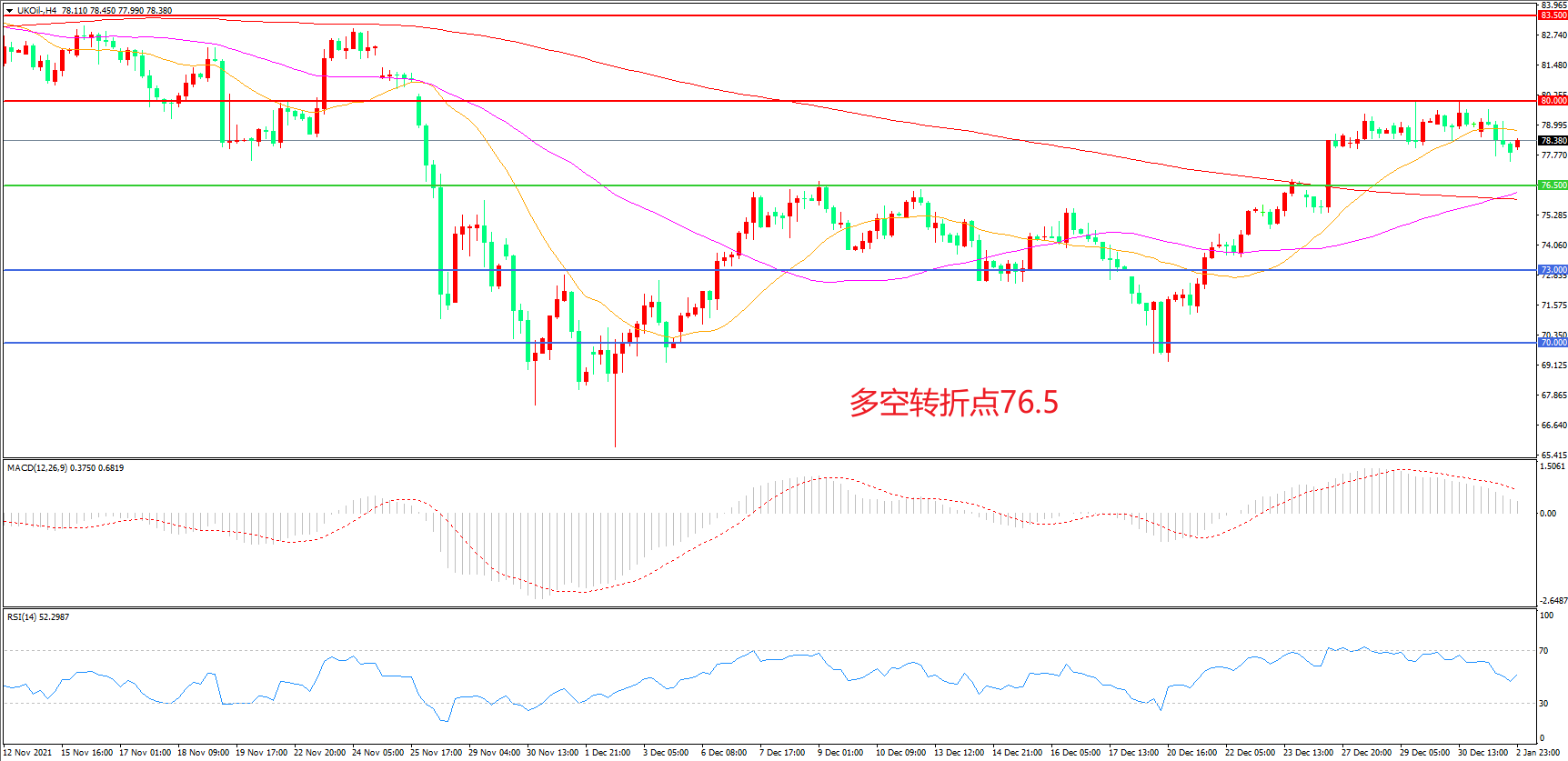 交易策略:在76.50之上看涨,目标80. 00                 83.00