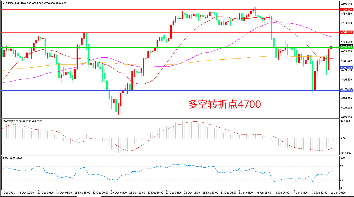 周二(1月11日),美联储主席鲍威尔在有关其连任提名的参议院听证会上称,如有降低通胀的需要,联储会更多次加息,这样的发言比最近其他联储高官的表态更为鸽派,标普500温和反弹,收报4704点。目前投资者正在等待的2021年第四季度财报季,贝莱德、花旗、摩根大通等将在周五公布财报,市场届时将得到更多指引。