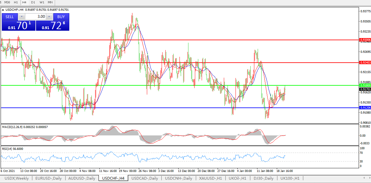 美元兑瑞郎USDCHF 4小时图: