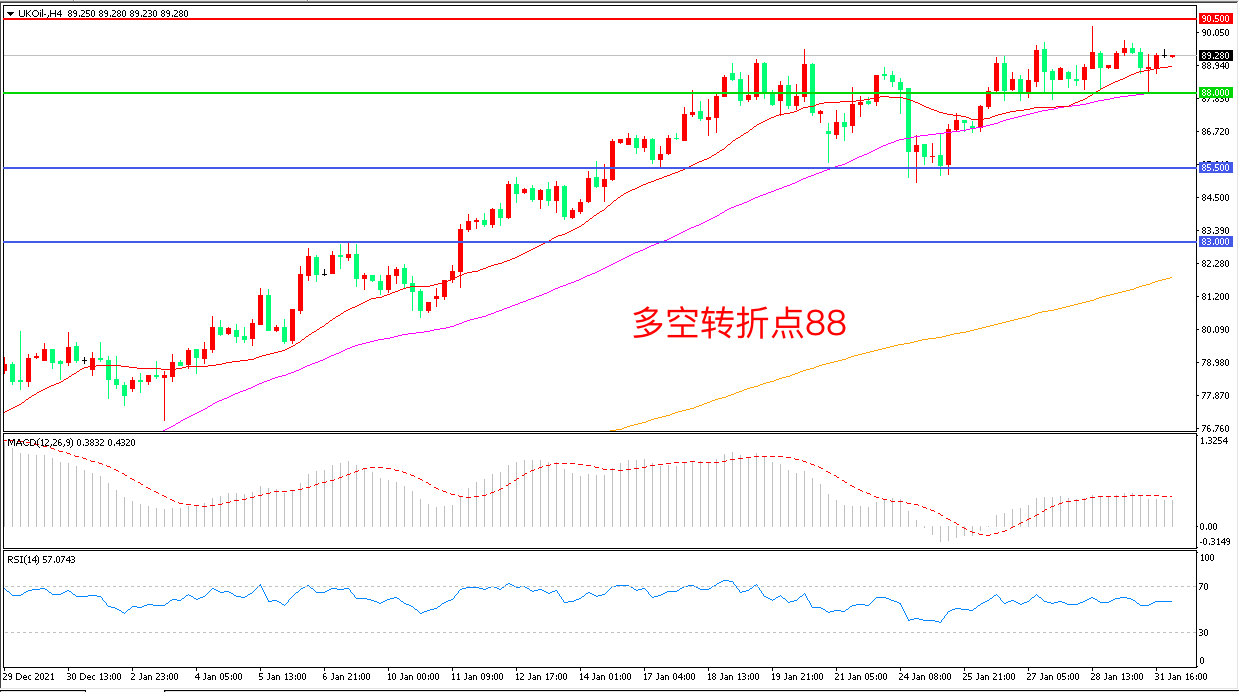 交易策略:在88.00之上看涨,目标90.50                93.00