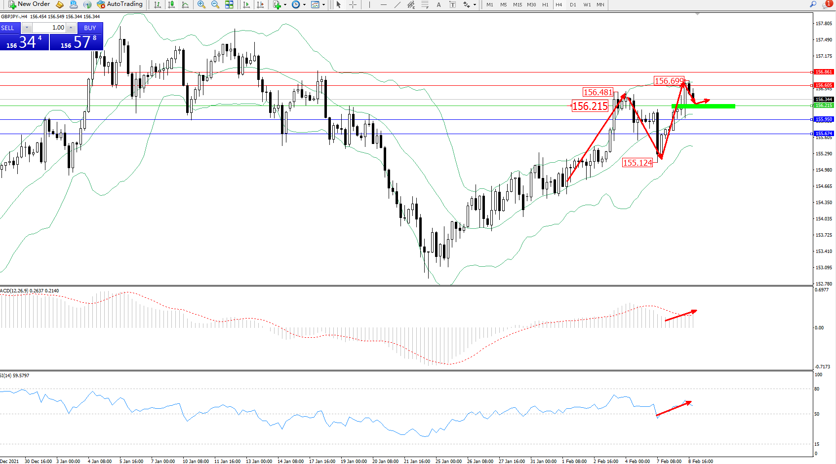 交易策略:156.215上方看涨,目标156.605、156.861