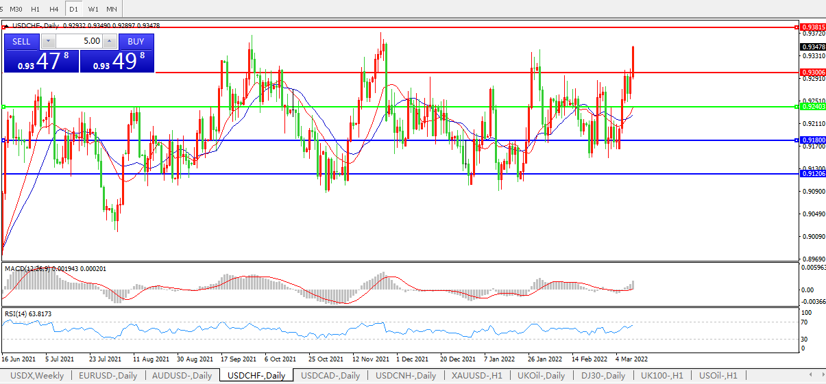 美元兑瑞郎USDCHF 日线图: