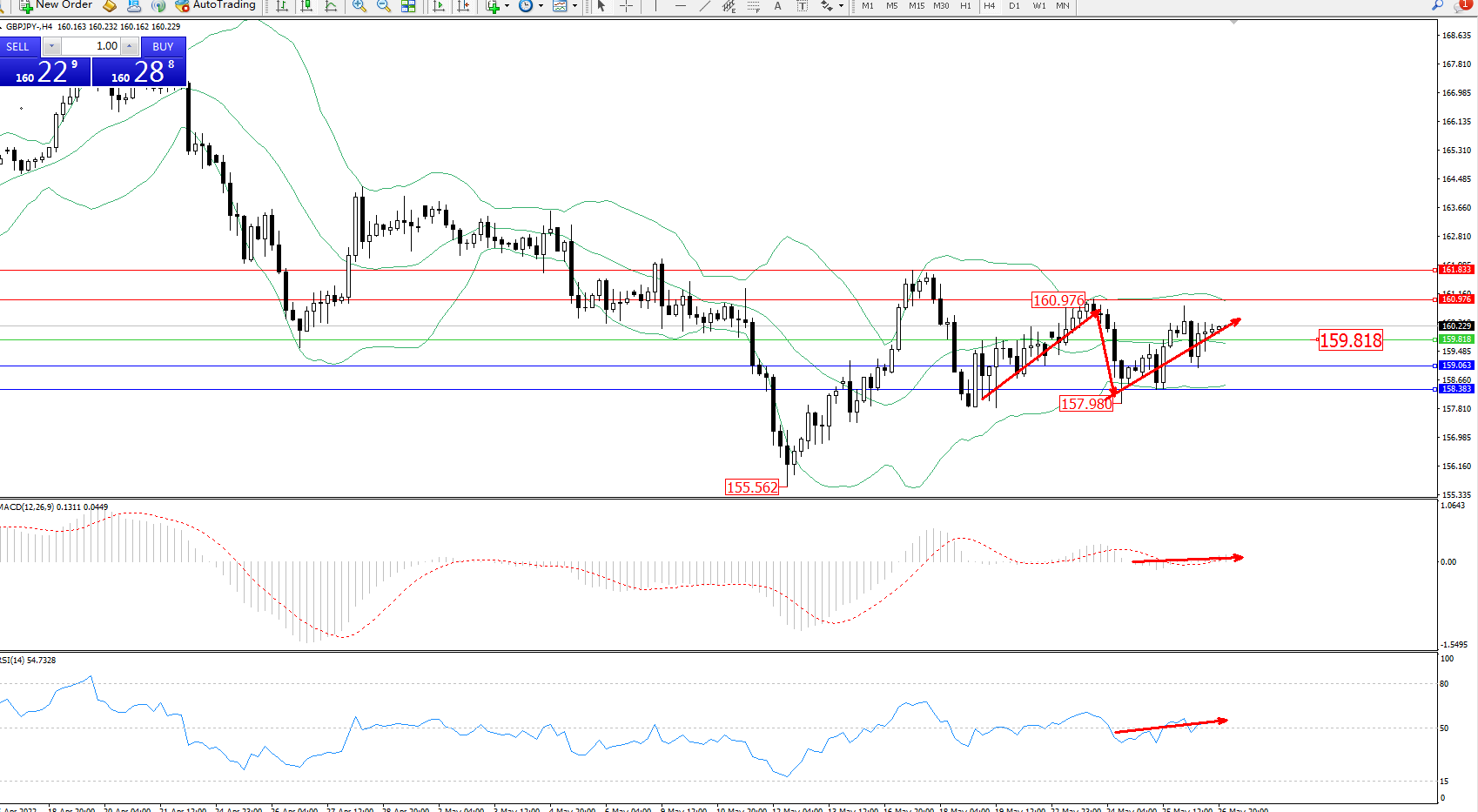 交易策略:159.818上方看涨,目标160.976、161.833
