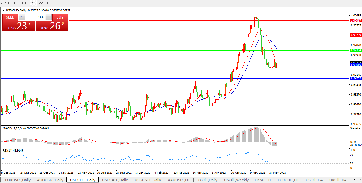 USDCHF  USDCAD 美联储紧缩政策持续,美元兑瑞郎延续弱势