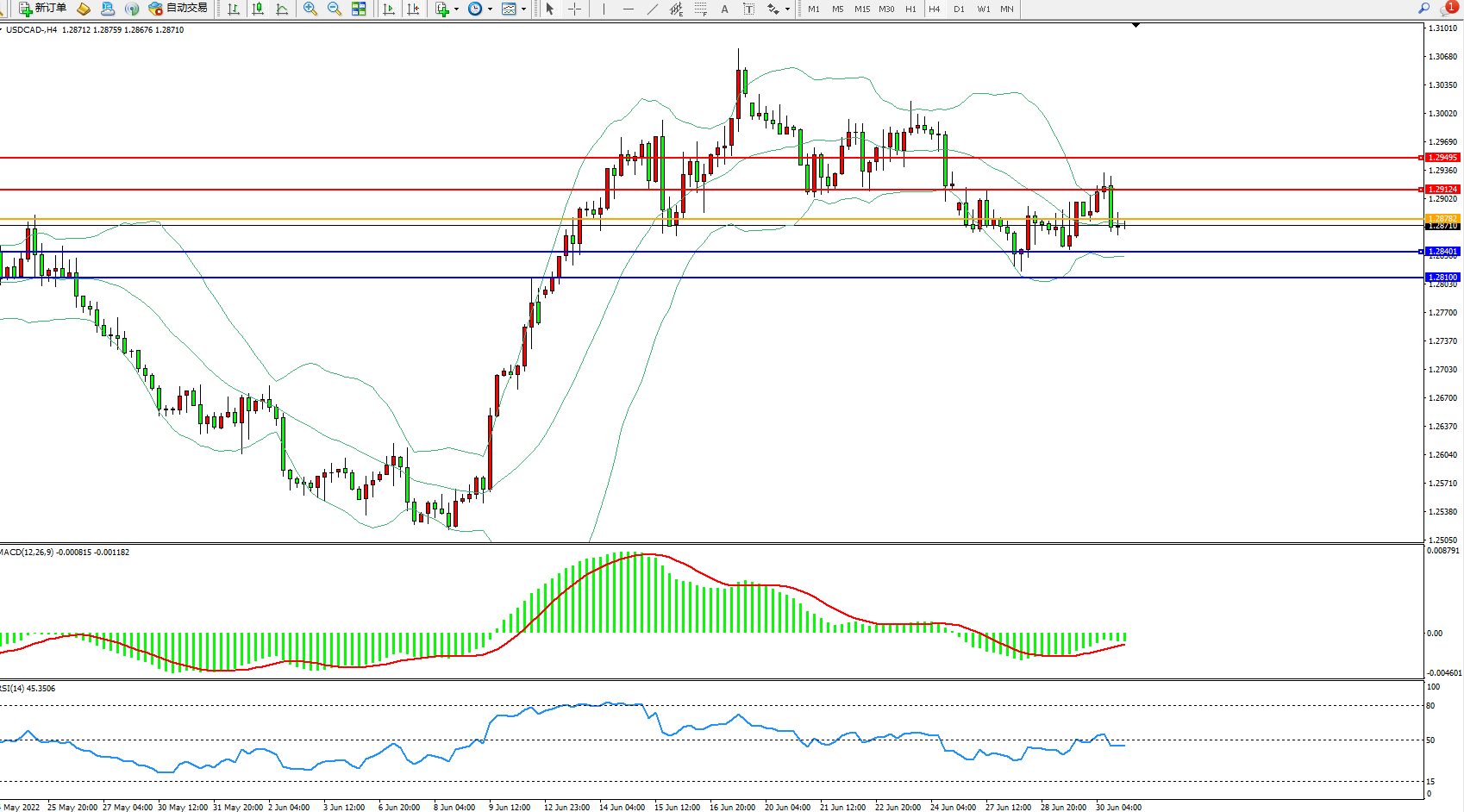 美元加元USDCAD——4小时K线图显示: