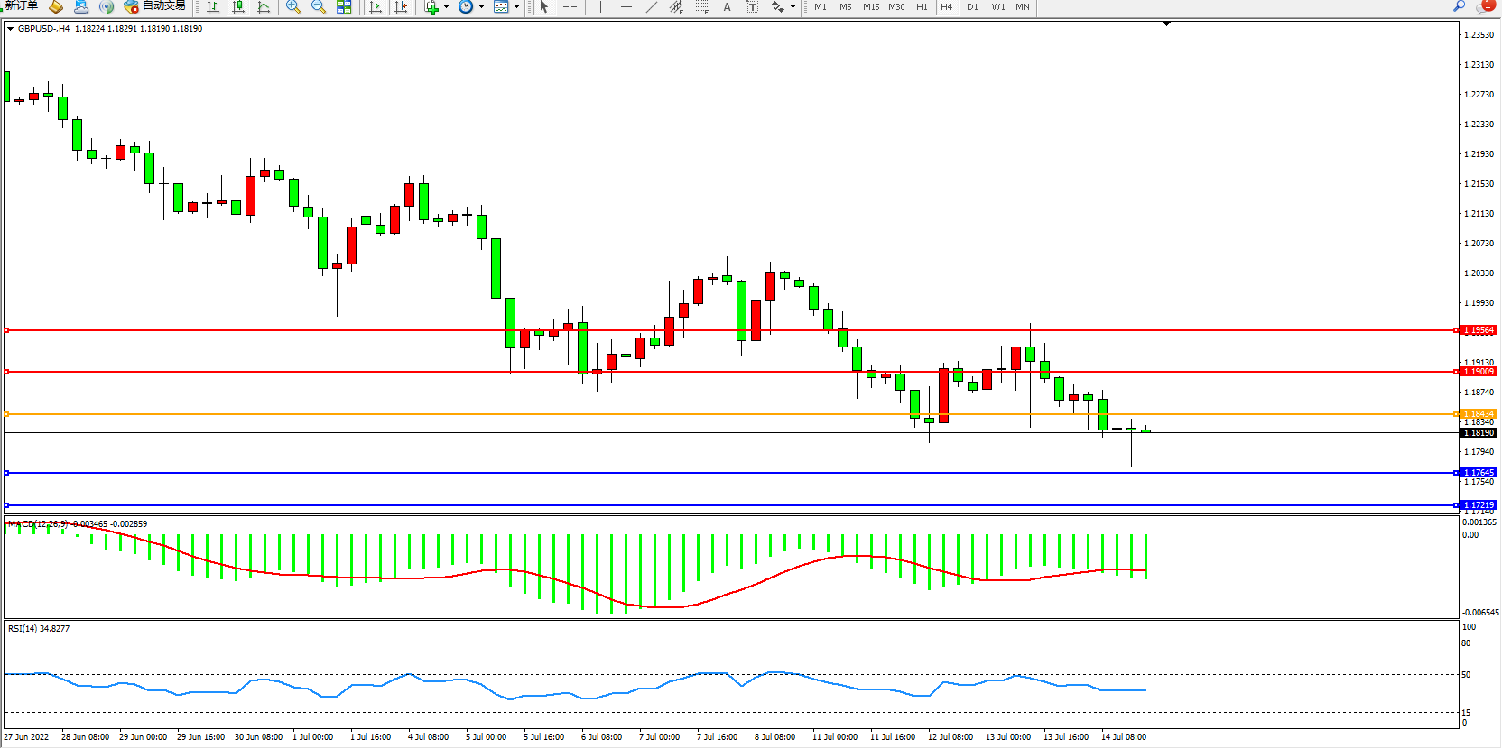 交易策略:1.18434下方看跌,目标1.17645、1.17219