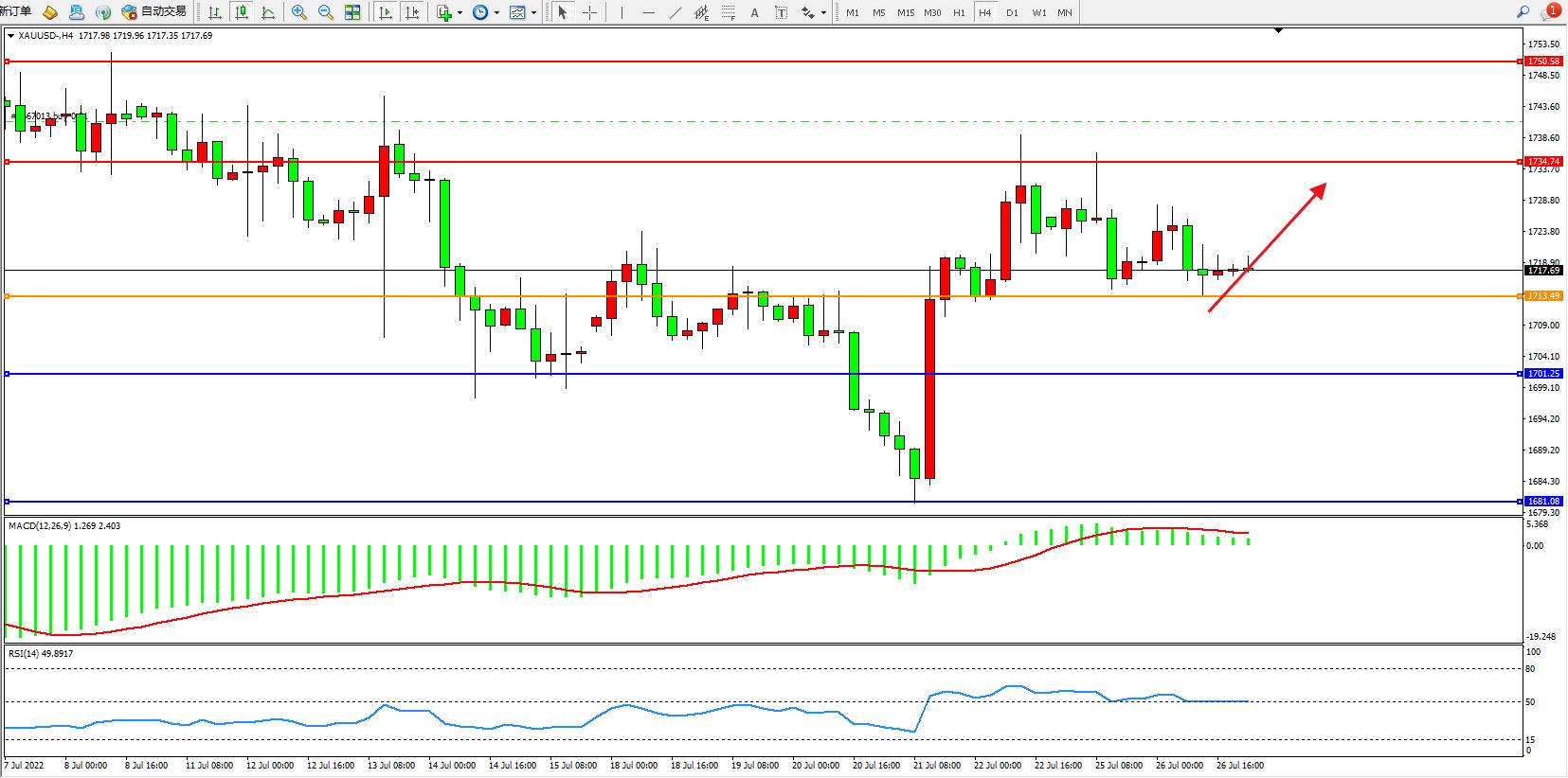 备选策略:在1713.00之上看涨,目标1735.00          1750.00
