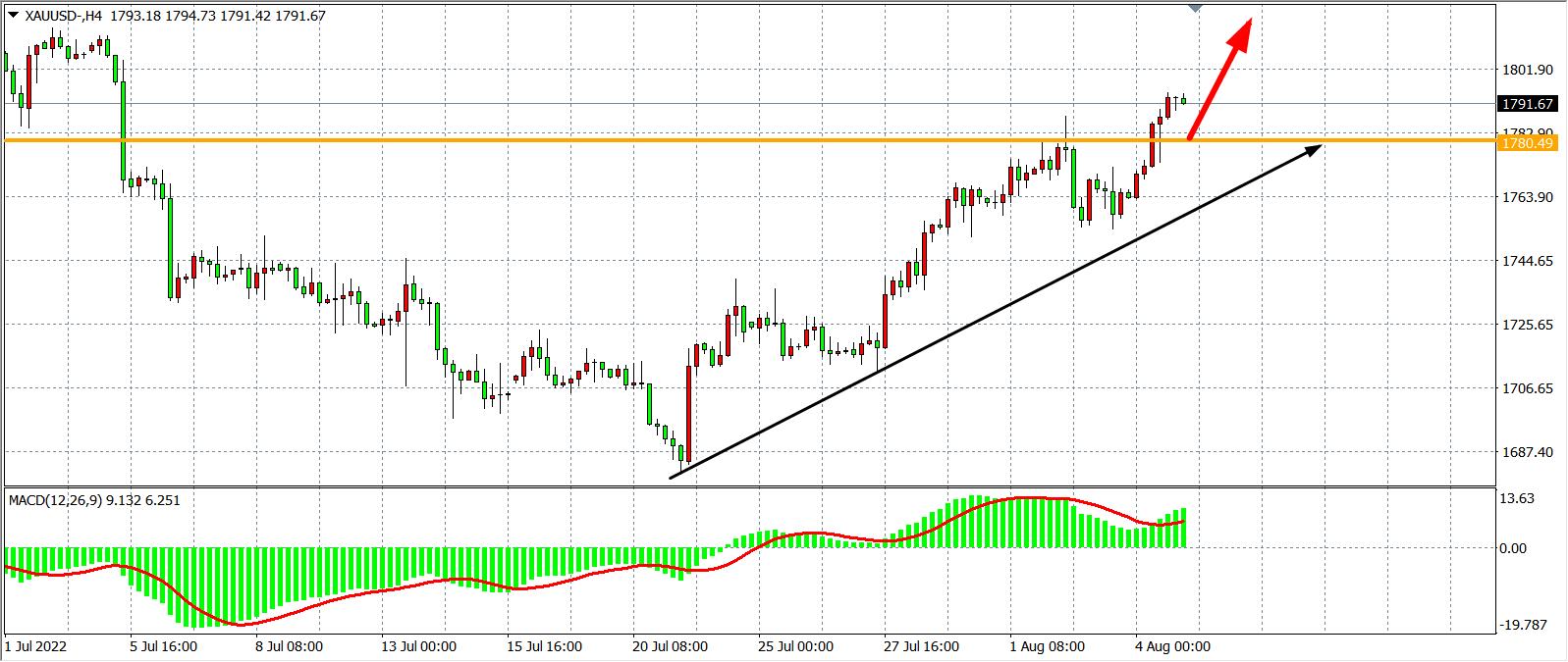 交易策略:在1780.00之上看涨,目标1800.00           1820.00
