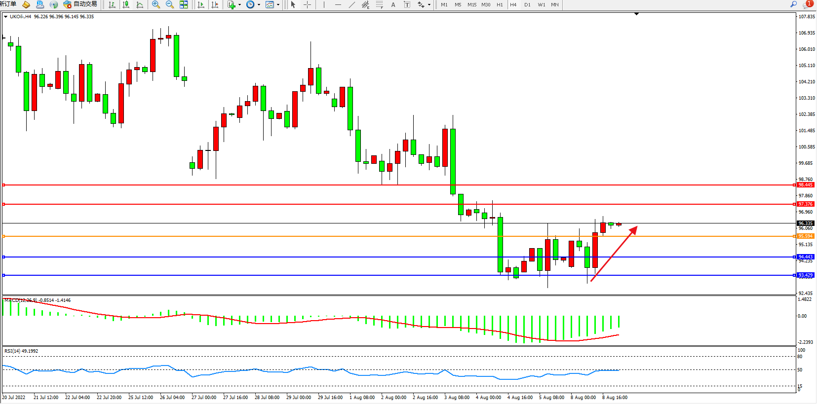 布油UKOil——4小时K线图显示: