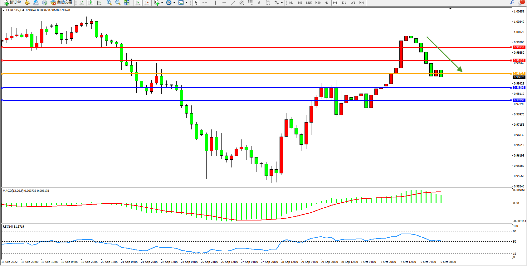 支撑:0.98293、0.97898