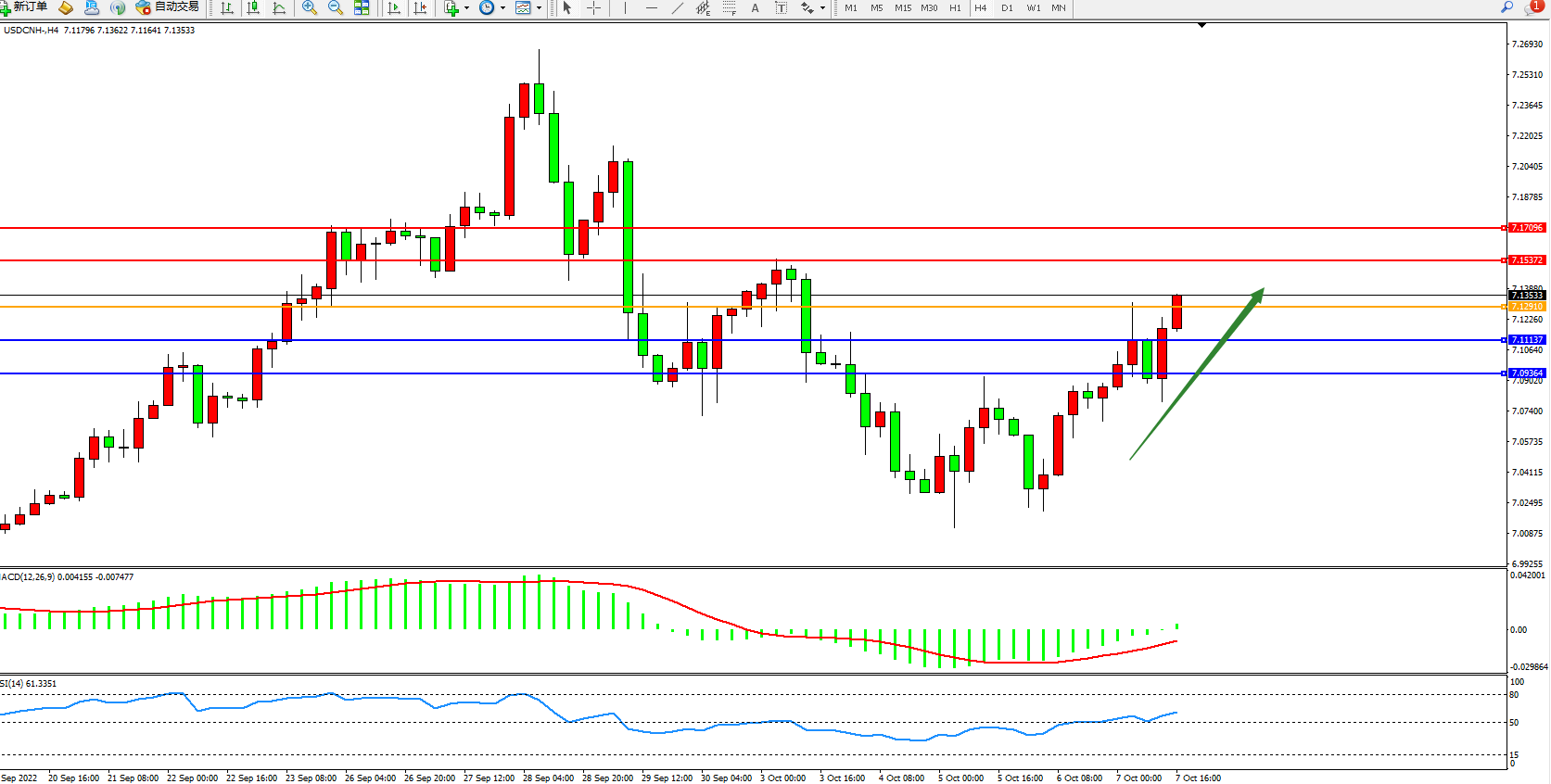 交易策略:7.12910上方看涨,目标7.15372、7.17096
