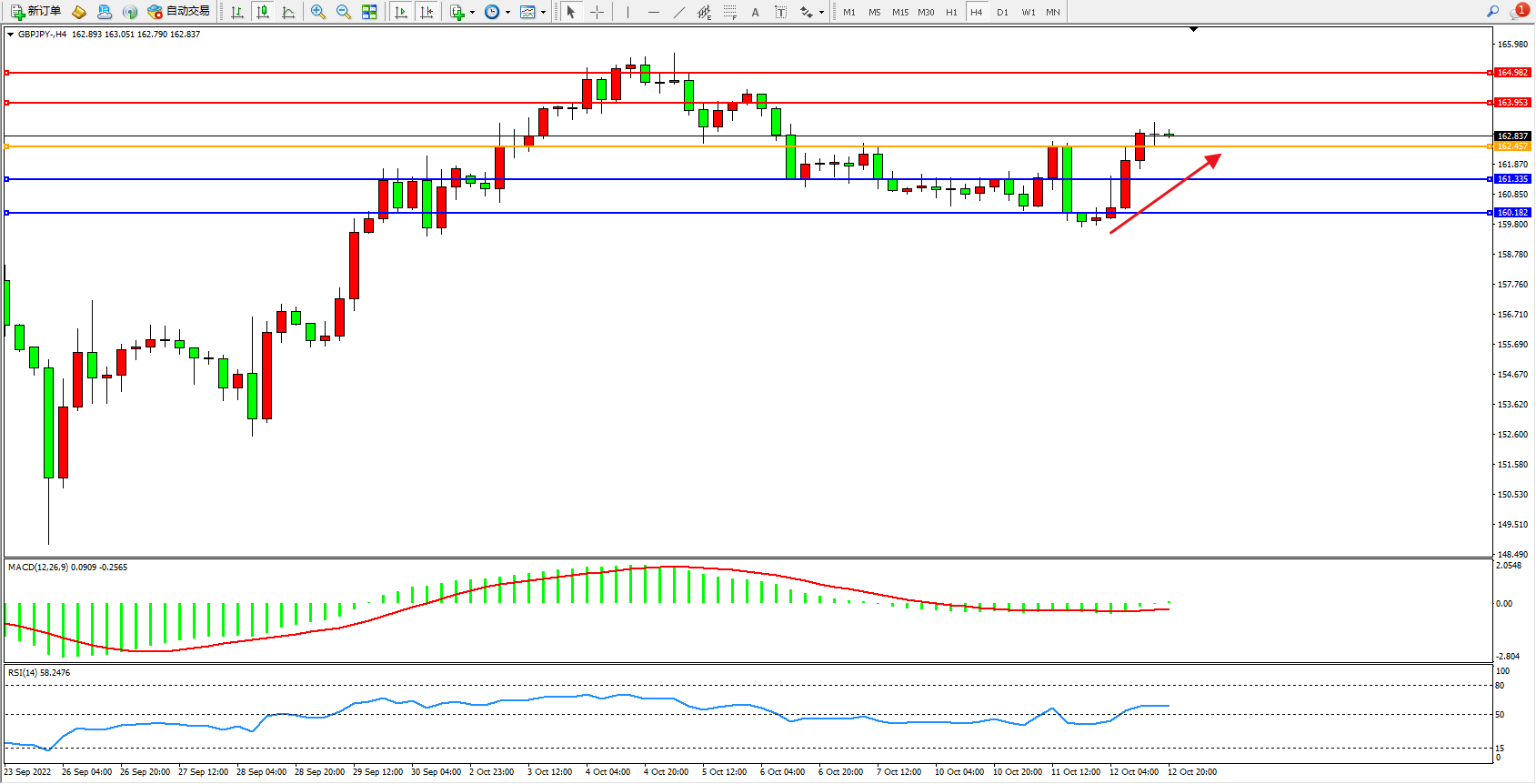 交易策略:162.457上方看涨,目标163.953、164.982
