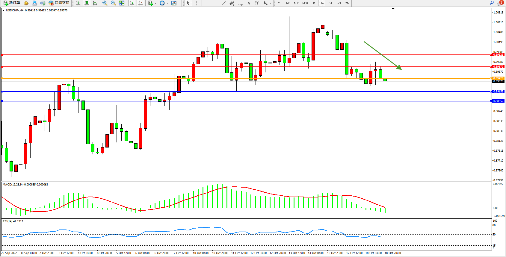 美元瑞郎USDCHF——4小时K线图显示: