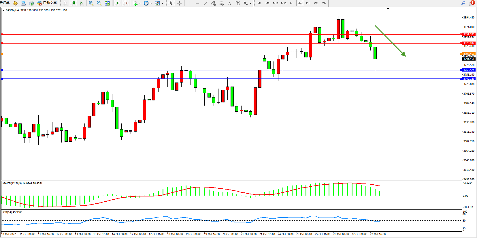 标普SP500——4小时K线图显示: