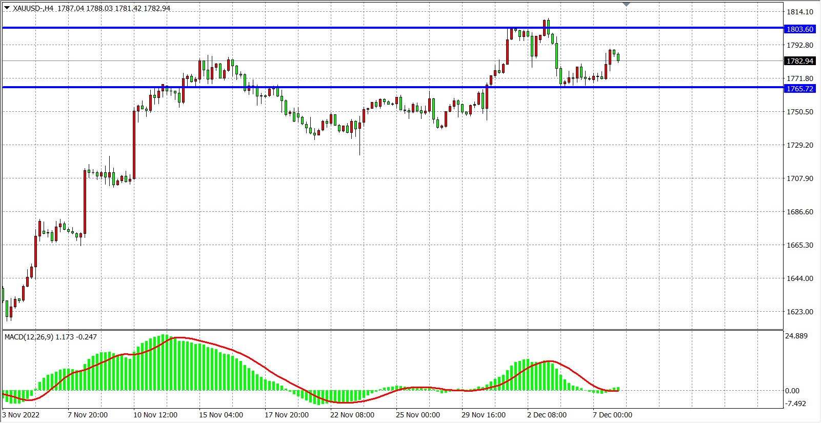 周三(12月7日)美元指数略有回落,现货黄金盘中向上触及1790美元,收涨0.85%