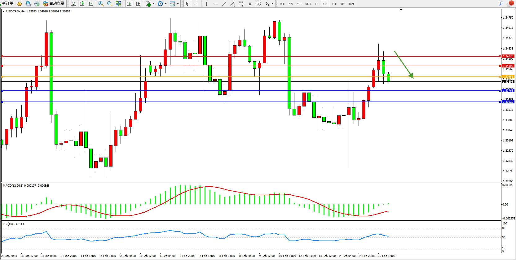 美元加元USDCAD——4小时K线图显示:
