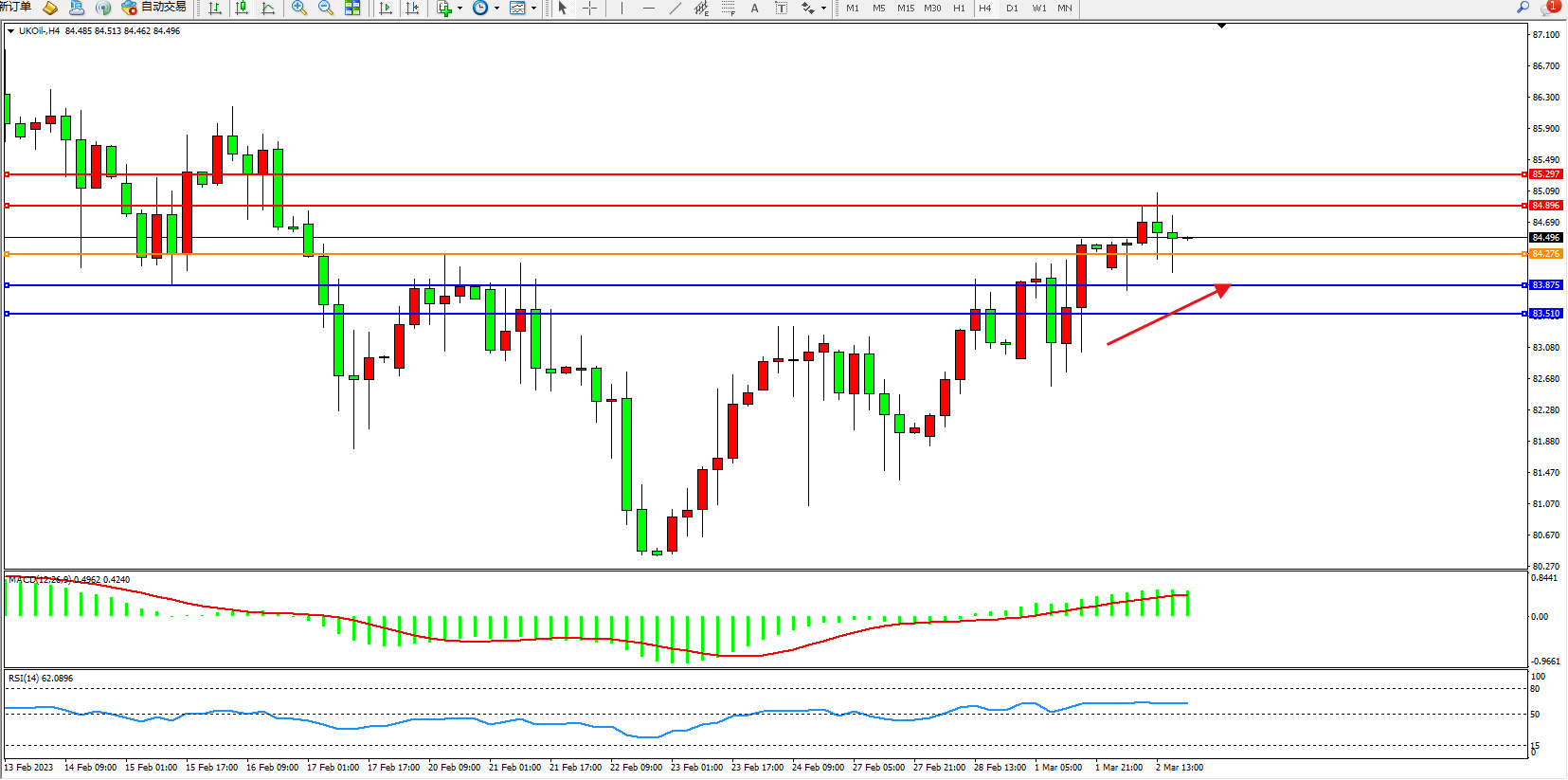 布油UKOil——4小时K线图显示:
