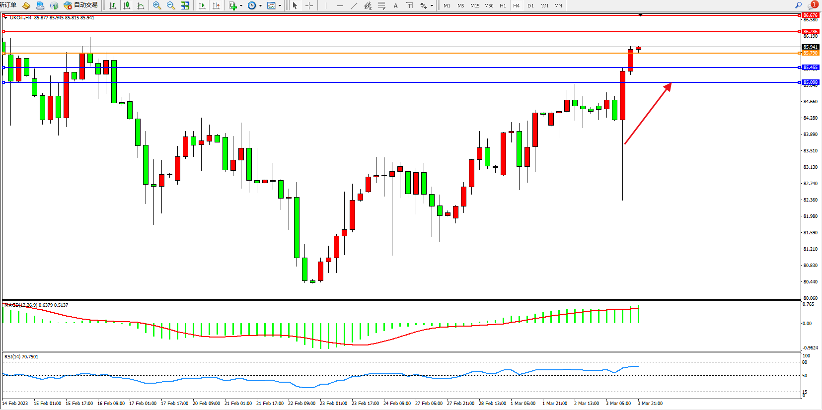 布油UKOil——4小时K线图显示: