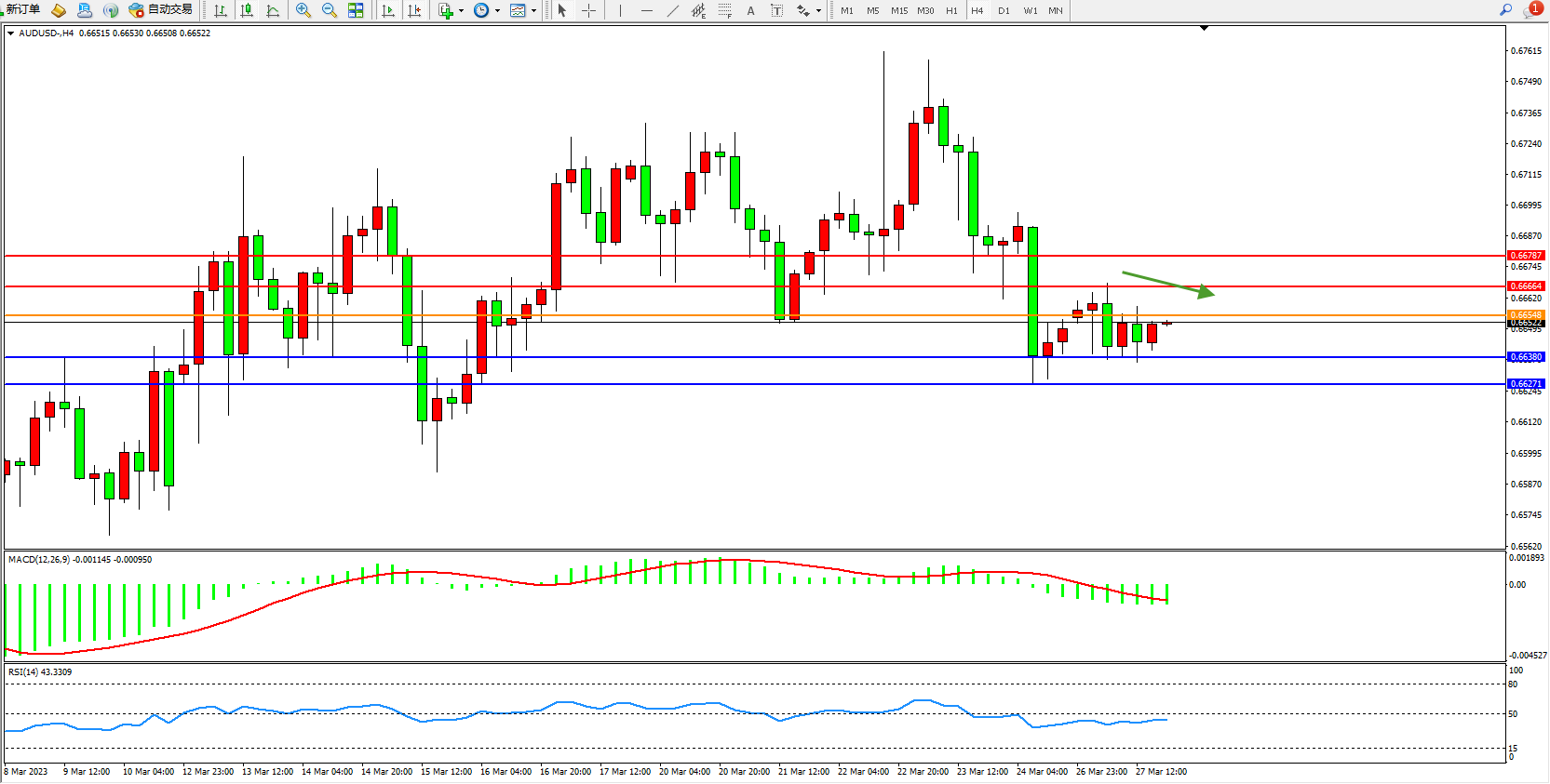 阻力位:0.66664 0.66787