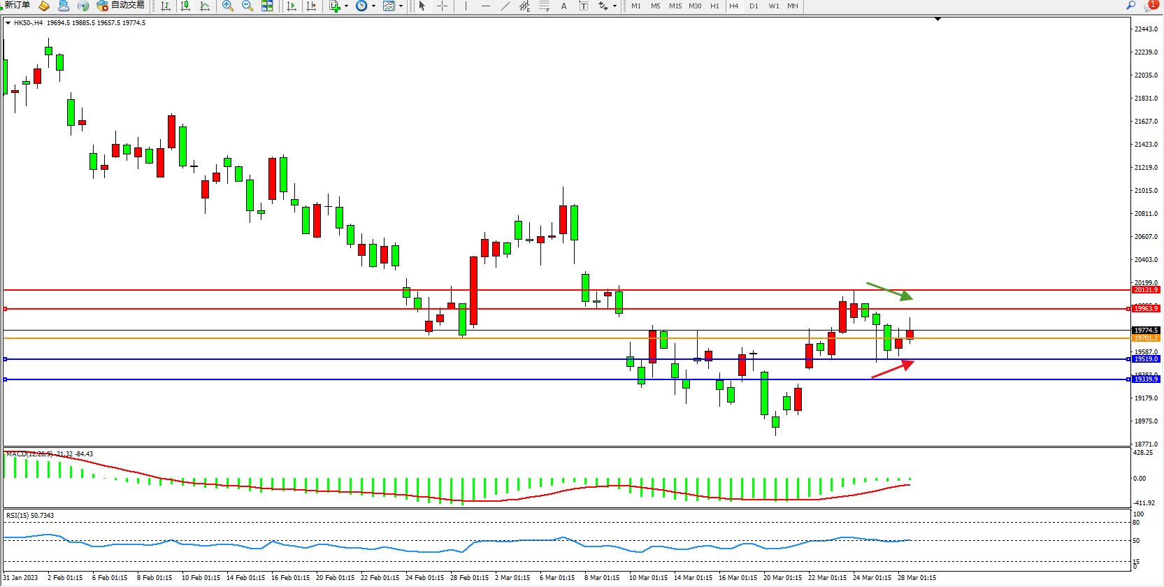 恒指HK50 4小时图