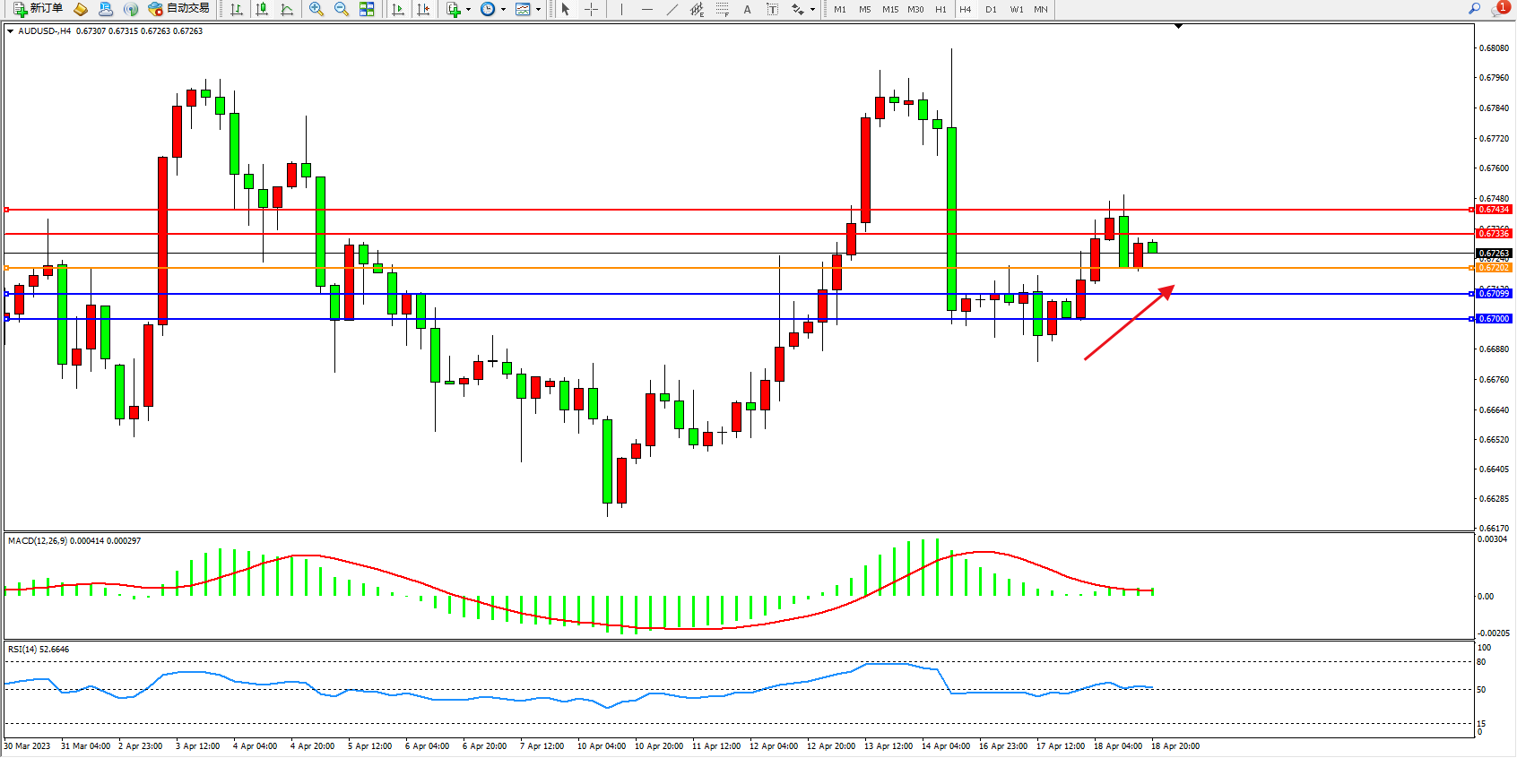 支撑位:0.67099 0.67000