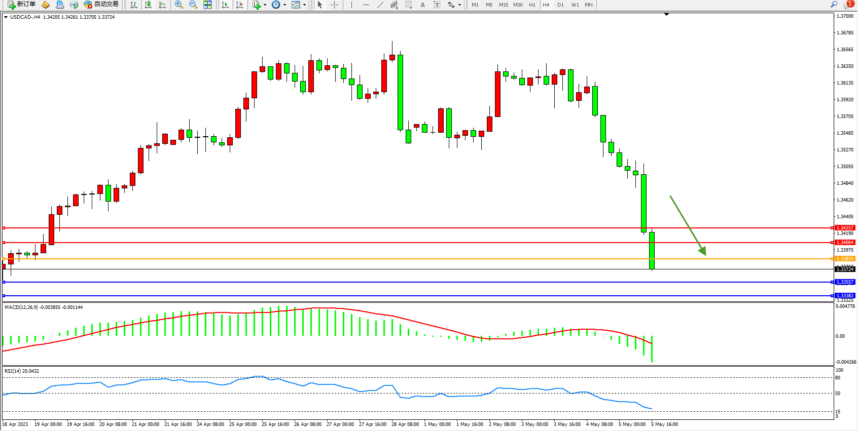 美元加元USDCAD——4小时K线图显示: