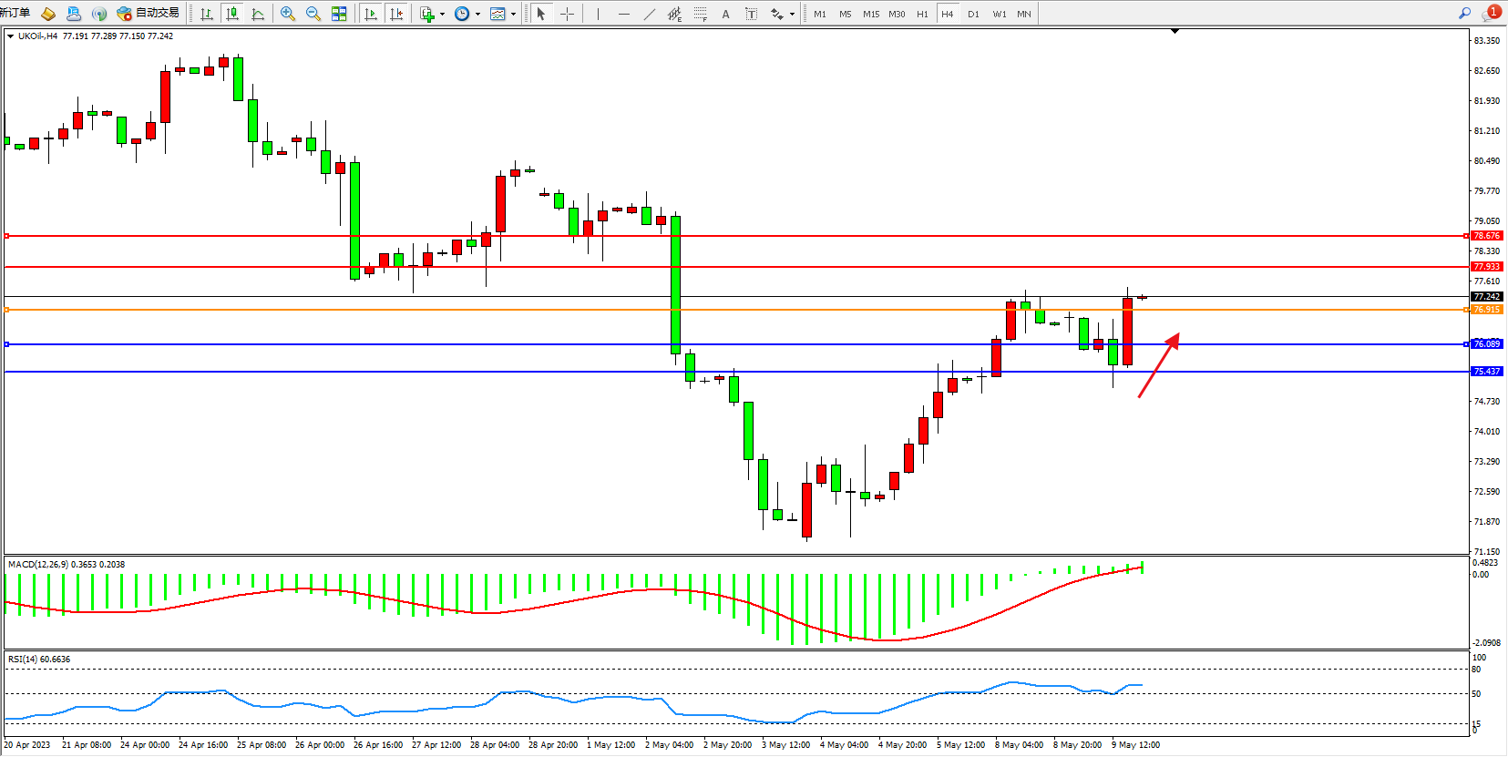 布油UKOil——4小时K线图显示: