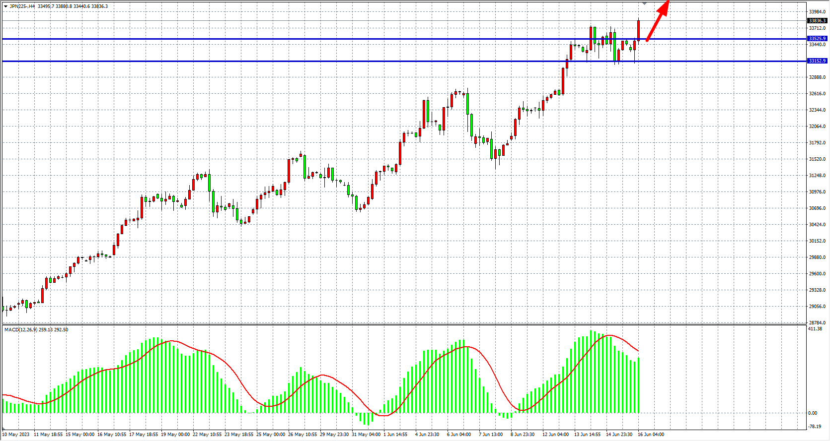 4小时图看,恒指在19800之上继续走强,MACD量能在零轴上继续放量,行情走强格局不变,当前支撑关注19800-19960附近,目标上看20250-20400。
