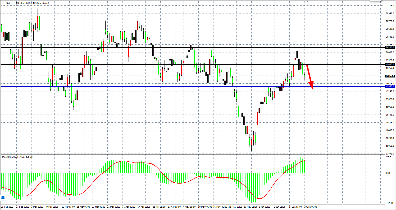 周二(6月20日)港股三大指数全天呈下跌行情,恒指跌1.54%下挫超300点