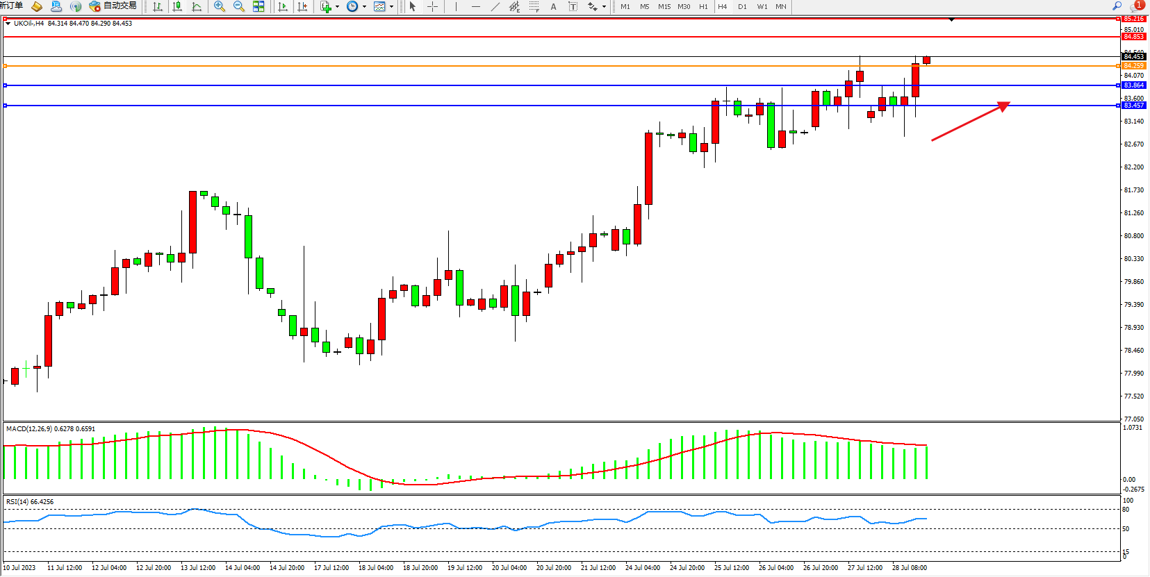 布油UKOil——4小时K线图显示: