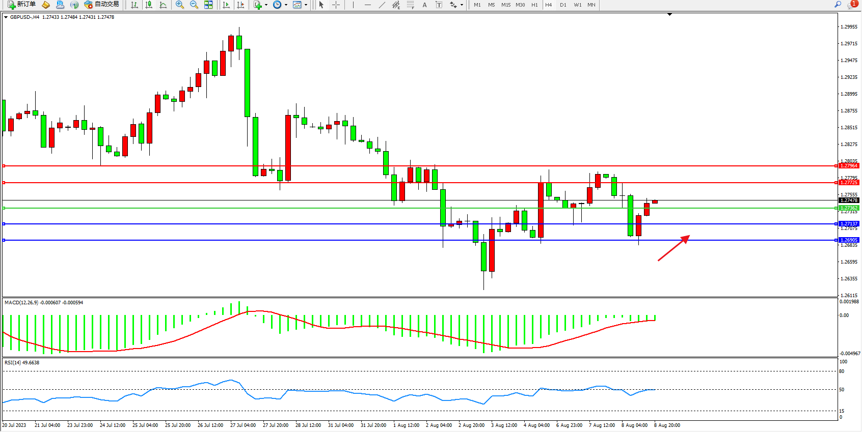 交易策略:1.27362上方看涨,目标1.27725  1.27964