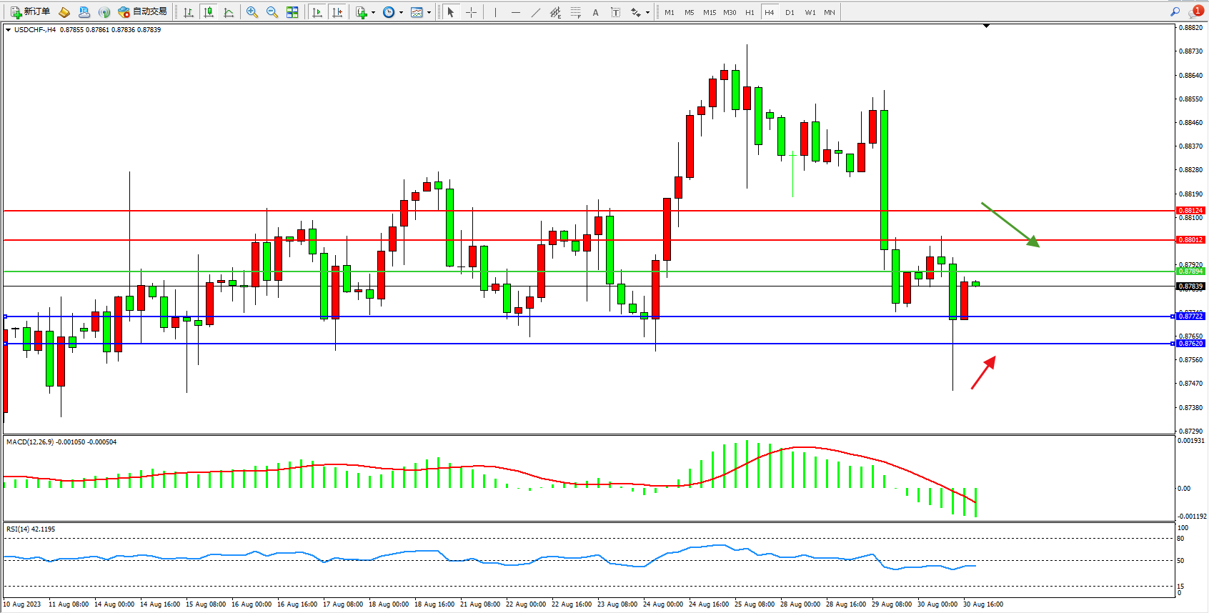 备选策略:0.87894上方看涨,目标0.88012 0.88124
