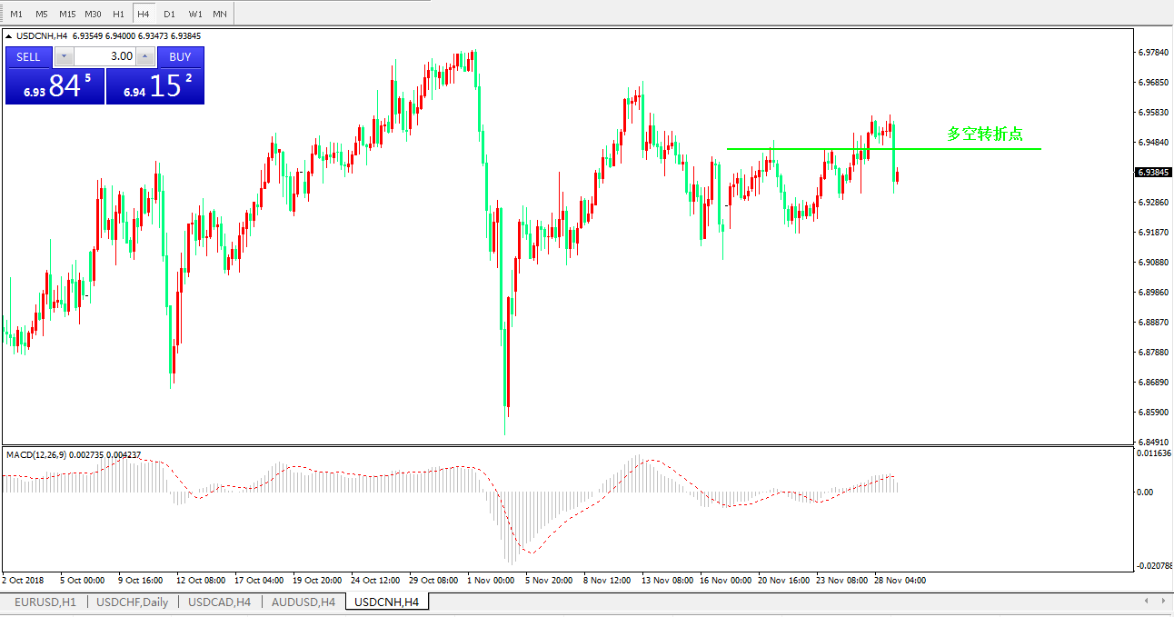 交易策略6.9460之下,看跌,目标价位为6.9314,然后为 6.9208